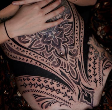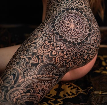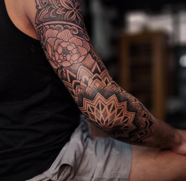 At Sacred Ornaments, geometric tattoos are treated as refined body architecture. Every design is created exclusively for one individual, carefully aligned with the body’s natural flow, and executed with uncompromising precision.